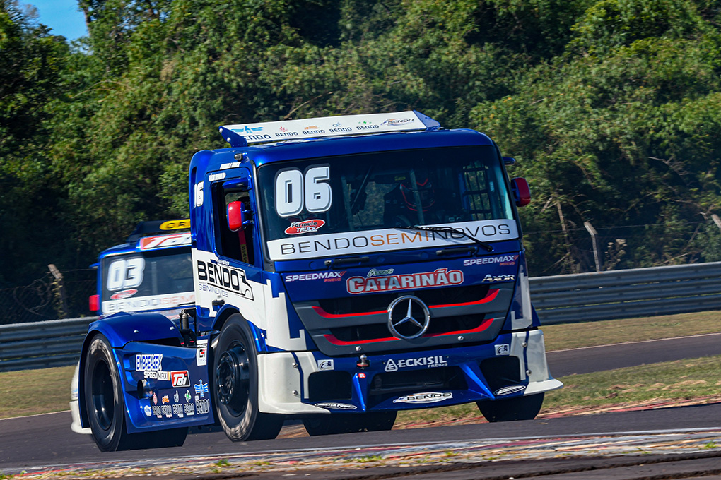Velocidade no Asfalto Bendo e Conci defenderão a liderança da Fórmula Truck em Campo Grande Por Eni Alves Publicado em 12 de junho de 2025 Compartilhar no Facebook Compartilhar no Twitter Compartilhar no Google+ Compartilhar no Pinterest A 5ª etapa da temporada será disputada no próximo domingo na capital sul-mato-grossense, valendo pelo Campeonato Interestadual e a Copa Mercosul Crédito das fotos: Tiago Soares/Divulgação CAMPO GRANDE (MS) – O catarinense Túlio Bendo, na categoria GT Truck, e o paranaense Carlos Eduardo “Duda” Conci na categoria F-Truck, defenderão a liderança da Fórmula Truck, no próximo domingo (15), em Campo Grande, no Mato Grosso do Sul. A prova será válida pela 5ª etapa do Campeonato Interestadual e a 3ª da Copa Mercosul. Na categoria Gt Truck (motores eletrônicos), Túlio Bendo está na liderança, com 370 pontos, enquanto que o paulista Alex Andrade Vieira ocupa a vice-liderança, com 340. Em terceiro aparece o paranaense Pedro Muffato, que não estará em Campo Grande por ter se aposentado na última, quando venceu a prova realizada em Cascavel, a sua cidade. Muffato tem 330 pontos e está à frente de Rafael Fleck (RS), com 310 pontos; João Batista M. dos Santos Filho (PR), 305; Douglas Torres (PR), 296; Ramiris Fontanella (SC), 290; Douglas Collet (RS), 285; Everton Fontanella (SC), 271; e Robson Luiz Trevizol (SC), com 270 pontos, e que pela ordem, ocupam as 10 primeiras colocações da classificação do campeonato. Com 440 pontos, Duda Conci é o primeiro colocado na classificação da categoria F-Truck (motores com bomba injetora). O gaúcho Diego Collet é o vice-líder, com 405; o paranaense Márcio Rampon, o terceiro, com 395; e o paraguaio Geovani Ferreira Tavares dos Santos é o quarto colocado, com 380 pontos. O paranaense Fábio Claudino ocupa a quinta colocação, com 320 pontos, estando à frente de Sérgio Chulik (PR), com 305 pontos; Thiago Mânica (PR), 270; Paulo César Secco (RS), 265; Camilo Daniel Lovato (PR), 260; e Tiago Bellaver (RS), com 240 pontos, que pela ordem fecham as 10 primeiras colocações da classificação do campeonato. A Fórmula Truck 2025 tem promoção e organização da GT Truck Eventos, patrocínio da SpeedMax Pneus e Rodas; Master Power, Eckisil, Trovão Brasil e Milwaukee, parceria de Boff Industria, JF Truck Especialistas, MS Diesel, Planeta Caminhão, Revista TruckSul Brasil e MAS Turfa Orgânica; supervisão das federações de automobilismo do Paraná, Rio Grande do Sul e Mato Grosso do Sul. Classificação da categoria GT Truck no Interestadual após 4 etapas 1º) Túlio Bendo (Ermo-SC), Mercedes-Benz, com 370 pontos 2º) Alex de Andrade Vieira (Santos-SP), Mercedes-Benz, 340 3º) Pedro Muffato (Cascavel-PR), Scania, 330 4º) Rafael Fleck (Porto Alegre-RS), Scania, 310 5º) João Batista M. dos Santos Filho (Colombo-PR), DAF, 305 6º) Douglas Torres (Curitiba-PR), Iveco, 296 7º) Ramiris Fontanella (Lauro Muller-SC), 290 8º) Douglas Collet (Casca-RS), Scania, 285 9º) Everton Fontanella (Criciúma-SC), Scania, 271 10º) Robson Luiz Trevizol (Xanxerê-SC), Volkswagen, 270 11º) Leandro Reis (Goiânia-GO), Scania, 230 12º) Robson Portaluppi (Bento Gonçalves-RS), Ford Cargo, 215 13º) Adriano Rocha (Araucária-PR), Scania, 190 14º) Jorge Maurício Ribeiro (Pelotas-RS), Scania, 165 15º) Sandro Abelardo Pinheiro (Itapema-SC), Mercedes-Benz), 151 16º) Alysson Nurnberg (Foz do Iguaçu-PR), Scania, 148 17º) Edivan Monteiro (Cascavel-PR), Mercedes-Benz, 135 18º) Rogério Agostini (São Miguel do Oeste-SC), Mercedes-Benz, 134 19º) Ricardo Alcides Ançay (Araucária-PR), Mercedes-Benz, 128 20º) Nilton Sérgio Jacobsen Filho (Paraguai), Scania, 125 21º) Roberto Luiz Ançay Filho (Mandirituba-PR), Volvo, 120 22º) Márcio Limestone da Rosa (Colombo-PR), Scania, 119 23º) Fabrício Rossato (Campo Largo-PR), DAF, 115 24º) Alexandre Navarro (São Paulo-SP), Mercedes-Benz, 115 25º) Márcio Rampon (Curitiba-PR), Scania, 101 26º) Leonardo Barramacher (Balneário Camboriú-SC), Volvo, 99 27º) João Helder Mottin (Curitiba-PR), Volvo, 97 28º) Fabrício Berton (Campo Grande-MS), Mercedes-Benz, 83 29º) Álvaro Bendo (Ermo-SC), Mercedes-Benz, 80 30º) Jair Moura (Cachoeirinha-RS), Ford Cargo, 80 31º) Thiago Marco Araújo (Sorocaba-SP), Mercedes-Benz, 55 32º) Victor Ficagna (Toledo-PR), Volvo, 40 33º) Lazaro Donizete Domiciano (São João da Boa Vista-SP), Volkswagen, 40 34º) Valdinei Vieira “Baté” dos Santos (Cascavel-PR), Mercedes-Benz, 40 35º) Geraldo Alves de Lima (Santos-SP), Volkswagen, 20 36)Lisarb Bonato (Canoas-RS), Volvo, com 20 pontos Classificação da categoria F-Truck no Interestadual após 4 etapas 1º) Carlos Eduardo Conci (Cafelândia-PR), Ford Cargo, com 440 pontos 2º) Diego Collet (Casca-RS), Mercedes-Benz, 405 3º) Márcio Rampon (Curitiba-PR), Scania, 395 4º) Geovani Ferreira Tavares dos Santos (Paraguai), Scania, 380 5º) Fábio Claudino (Mandirituba-PR), Scania, 320 6º) Sérgio Chulik (Curitiba-PR), Volkswagen, 305 7º) Thiago Mânica (Curitiba-PR), Scania, 270 8º) Paulo César Secco (Erechim-RS), Scania, 265 9º) Camilo Daniel Lovato (Almirante Tamandaré-PR), Scania, 260 10º) Tiago Bellaver (Farroupilha-RS), Mercedes-Benz, 240 11º) Carlito Brito (Curitiba-PR), Scania, 240 12º) Dario do Amaral (Pindamonhangaba-SP), Scania, 225 13º) Gabrielle Rampon (Curitiba-PR), Scania, 215 14º) Bruno Mânica (Curitiba-PR), Scania, 135 15º) Joacir Giaretta Cordova (Curitiba-PR), Volvo, 135 16º) Gabriel Saccomanno (São Paulo-SP), Volkswagen, 115 17º) Wagner Gomes (Curitiba-PR), Scania, 90 18º) Doulas Torres (Curitiba-PR), Ford Cargo, 83 19º) Natanael Limestone (Colombo-PR), Scania, 80 20º) Gilmar Antônio Mottin (Adrianópolis-PR), Scania, 80 21º) Max Nunes (Curitiba-PR), volvo, 63 22º) Márcio Rosa (Colombo-PR), 61 23º) Gustavo Mânica (Curitiba-PR), Scania, 44 24º) Cléber Fonseca (Cascavel-PR), Iveco, com 20 pontos Calendário da Fórmula Truck para a tem