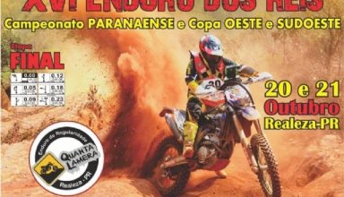 Pilotos aceleram na final do Paranaense de Enduro de Regularidade, em Realeza Disputa acontece neste fim de semana, dias 20 e 21 de outubro, durante o tradicional Enduro dos Reis O Campeonato Paranaense de Enduro de Regularidade terá as duas últimas etapas da temporada 2018 realizadas neste fim de semana, dias 20 e 21 de outubro, durante o XVI Enduro dos Reis, na cidade de Realeza, localizada na região Sudoeste do estado. … Leia mais