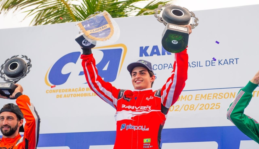 Kart Campeão da OK-N, Firás Fahs busca mais um título na Copa Brasil de Kart O piloto de Foz do Iguaçu se sagrou campeão da categoria OK-N no último sábado e permanece em Aracaju para a disputa da F-4 Graduados FOZ DO IGUAÇU (PR) – Campeão da categoria OK-N no último sábado (26), o paranaense Firás Fahs permanece em Aracaju (SE) para competir no Grupo 2 da 26ª Copa Brasil de Kart, no Kartódromo Emerson Fittipaldi, … Leia mais