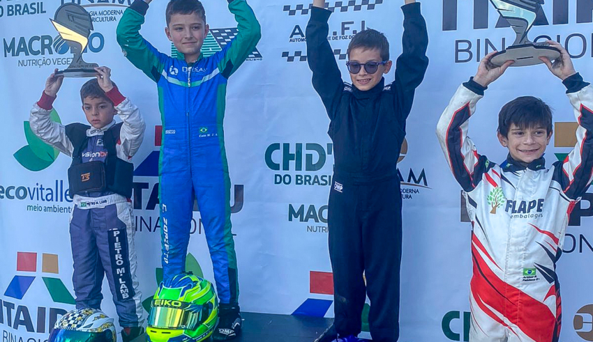 Kart Zorzetto amplia a liderança da Cadete em Foz do Iguaçu Com a vitória de sábado na segunda etapa, o piloto de São Miguel do Iguaçu se mantém na liderança da categoria Cadete, agora com 52 pontos Caio Zorzetto, da equipe Controllity/Disam Insumos Agrícolas/CHD’S do Brasil/Ademicon/Thunder/Lei de Incentivo ao Esporte, teve mais uma atuação perfeita sábado, na pista do Adrena Kart, quando venceu a categoria Cadete na 2ª etapa do Campeonato … Leia mais